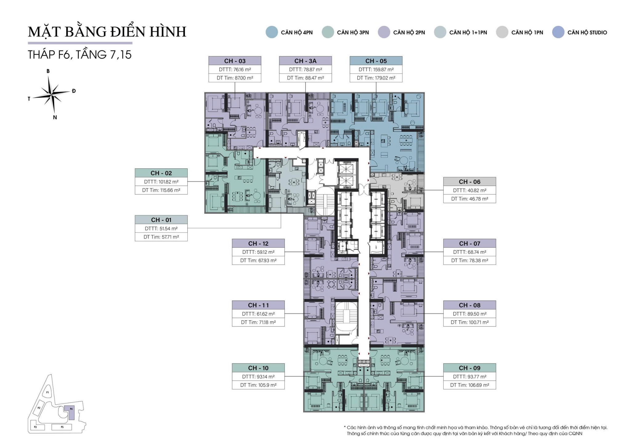 - Số tòa căn hộ 5 tòa (cao 191,4m)