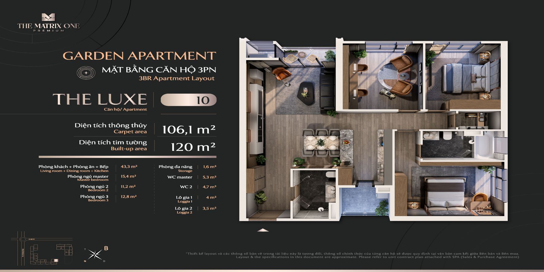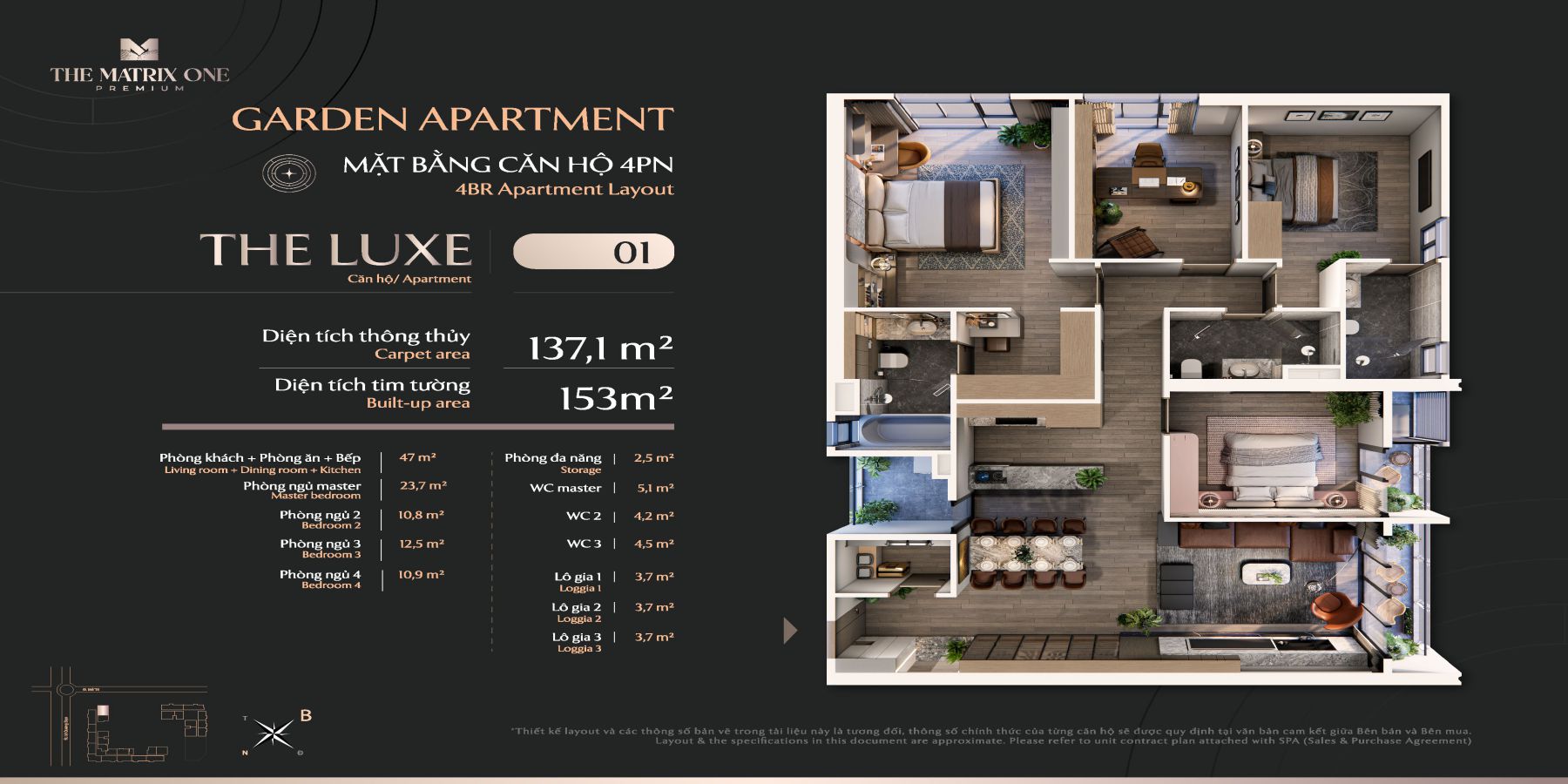 3. Loại 3PN: Từ 120m2 – 137m2.