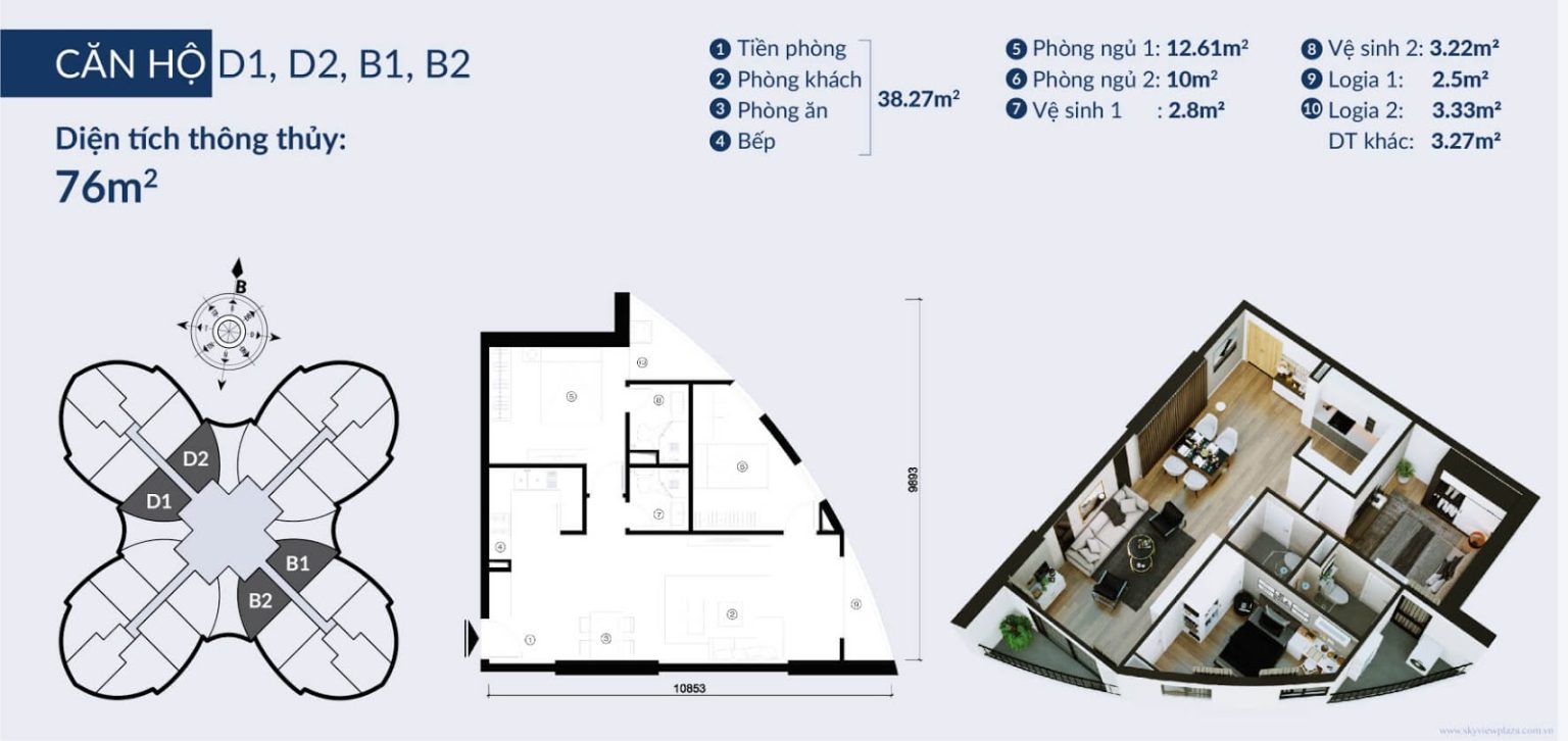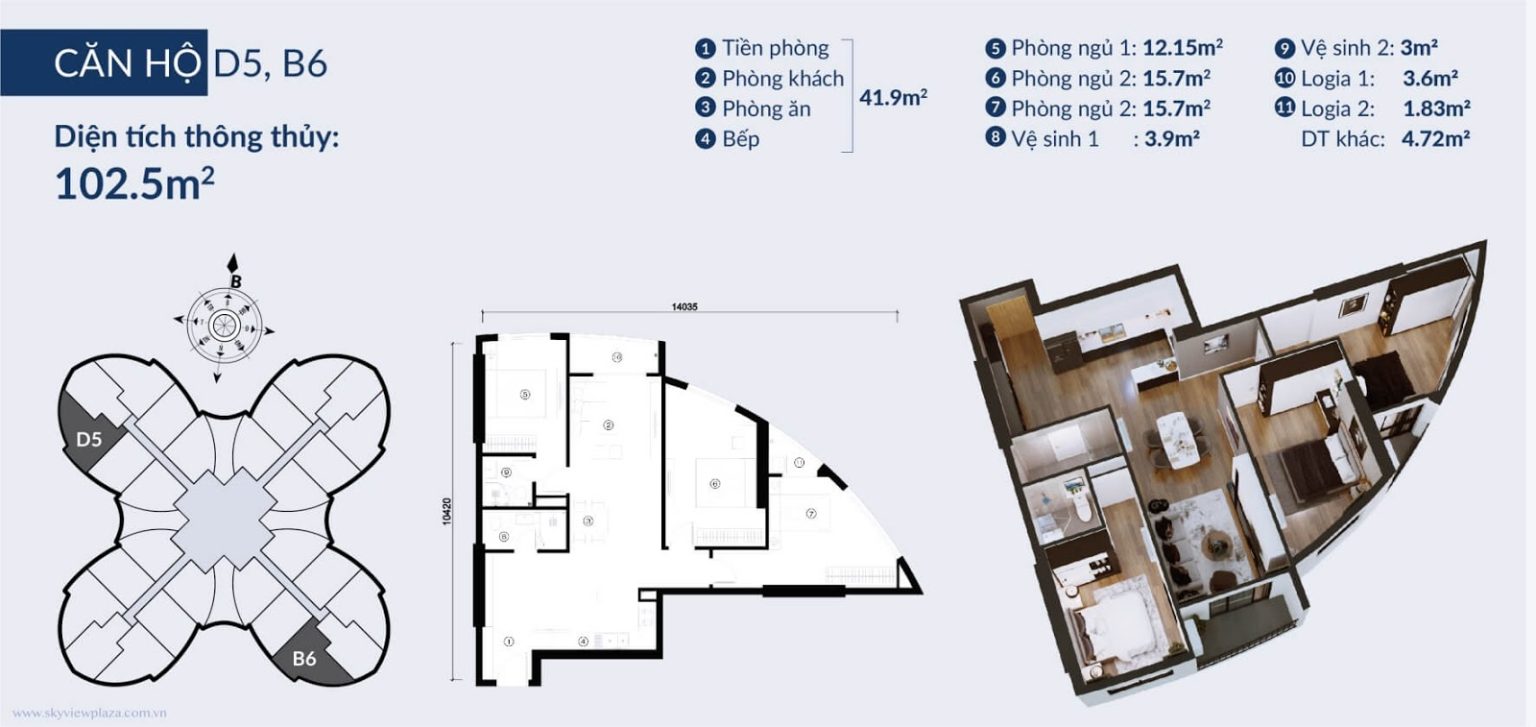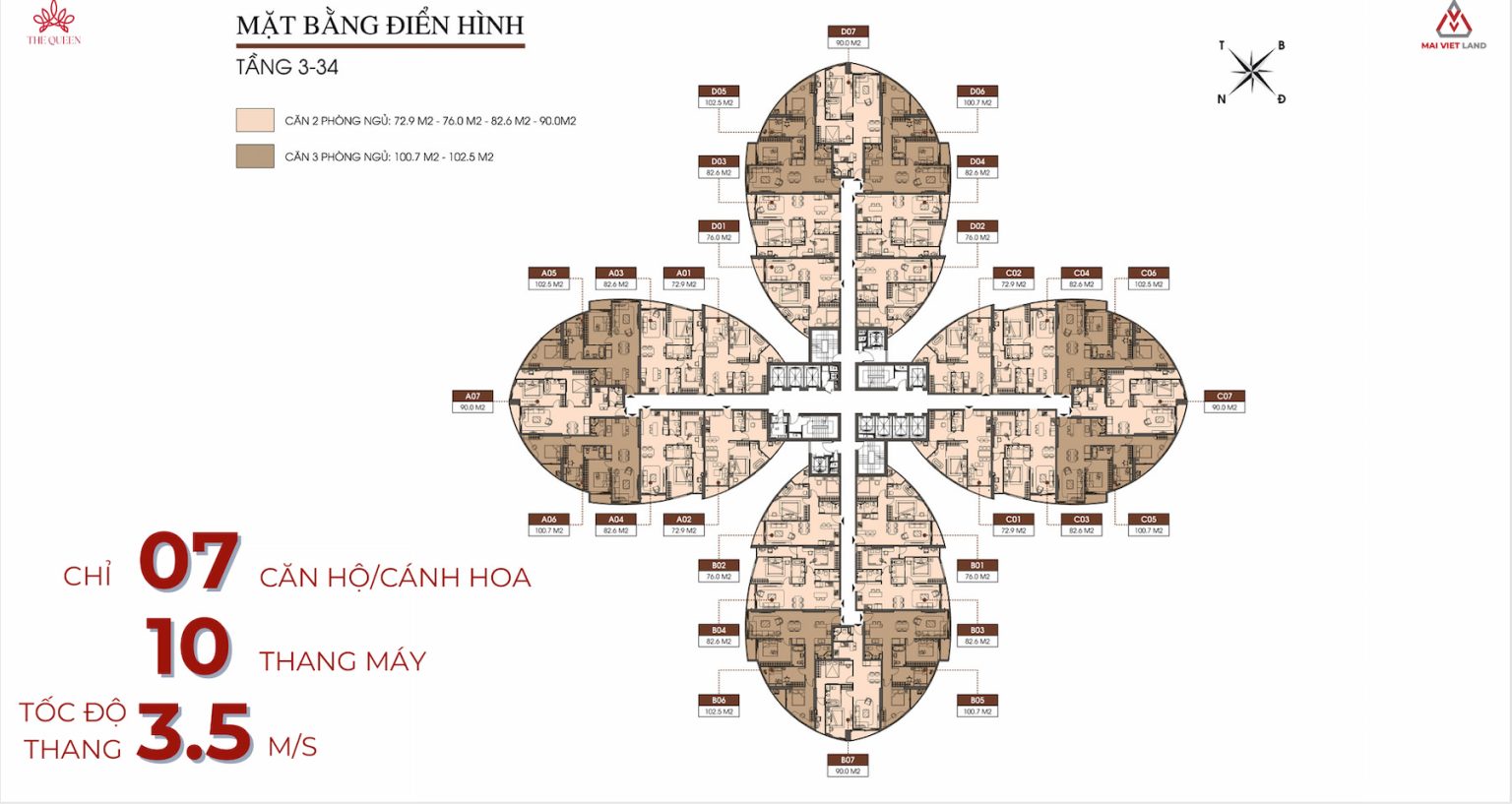 • Diện tích căn hộ: 71,9 m² – 103,3 m² (tầng 35 có căn đặc biệt 334,8 m²)